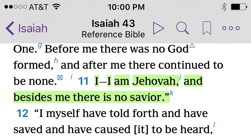 Well done once again, Wordgirl! As I talk with JW’s and view videos of conversations with them online, they’re now often using the phrase, “this teaching is a problem for you, but it’s not a problem for me.” We can turn that around on them, saying that the trinity doctrine is not a problem for us because of these verses, where both the Father and Jesus are savior, and there’s only one savior. Isaiah shows that there’s only one creator, also (Isaiah 44:24), but “we don’t have a problem with” both Yahweh and Jesus being the one creator.